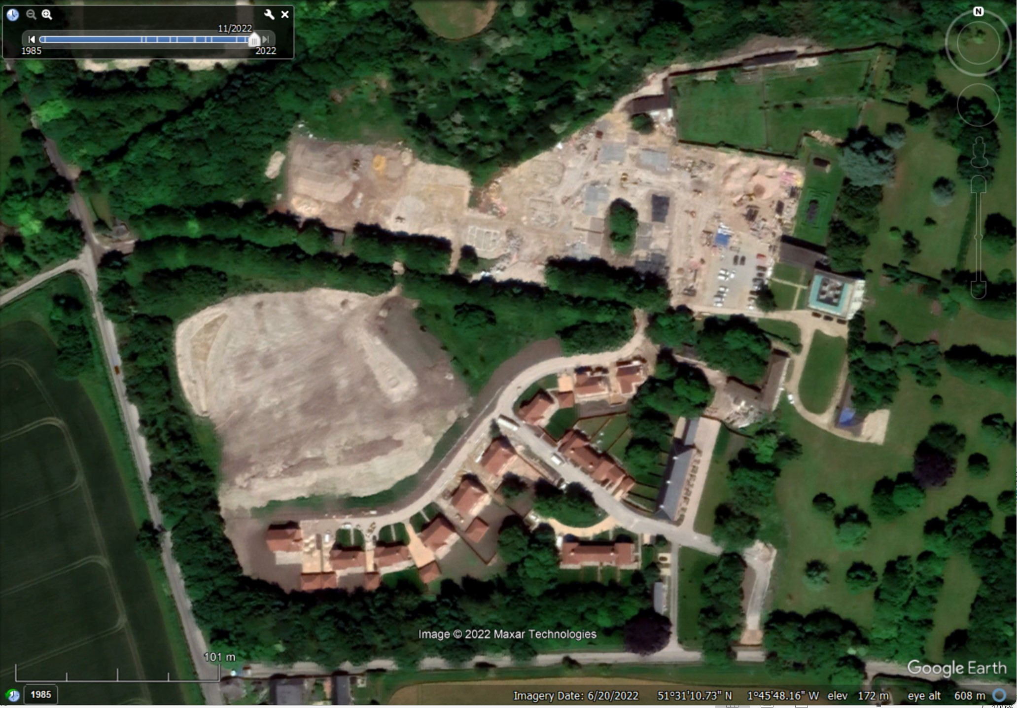 Google Earth has provided another new satellite image which clearly slows the house around the edge of what was the sportsfield. If you would like to buy one (or look around one) then they are on sale here. They seem to be over-priced for Swindon! Also below, to jog peoples' memories, is a Burderop Park winter scene.